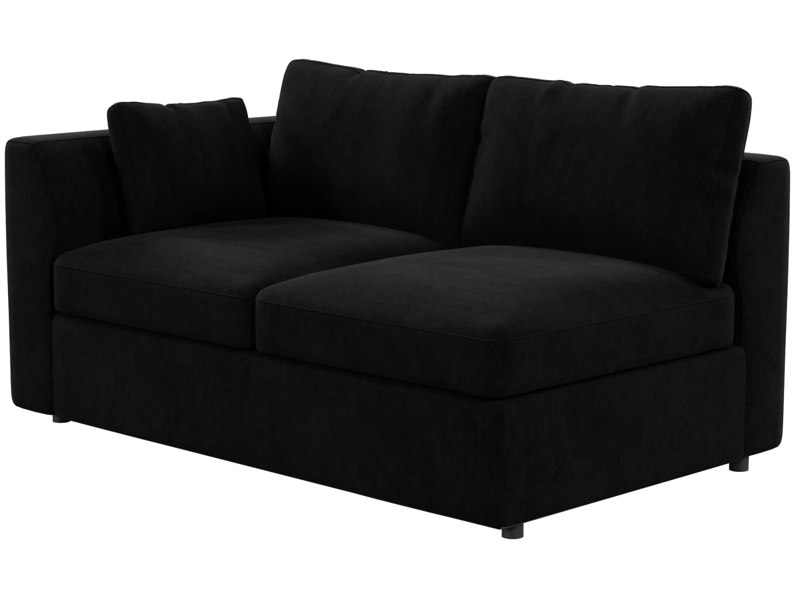 Глубокие сиденья и качественные подушки сидений и спинок гарантируют максимальный комфорт и надежную поддержку спины. Размеры дивана — 162 х 95 х 95 см, высота посадки — 50 см, а черные пластиковые ножки высотой 5 см придают ему устойчивость и современный вид.