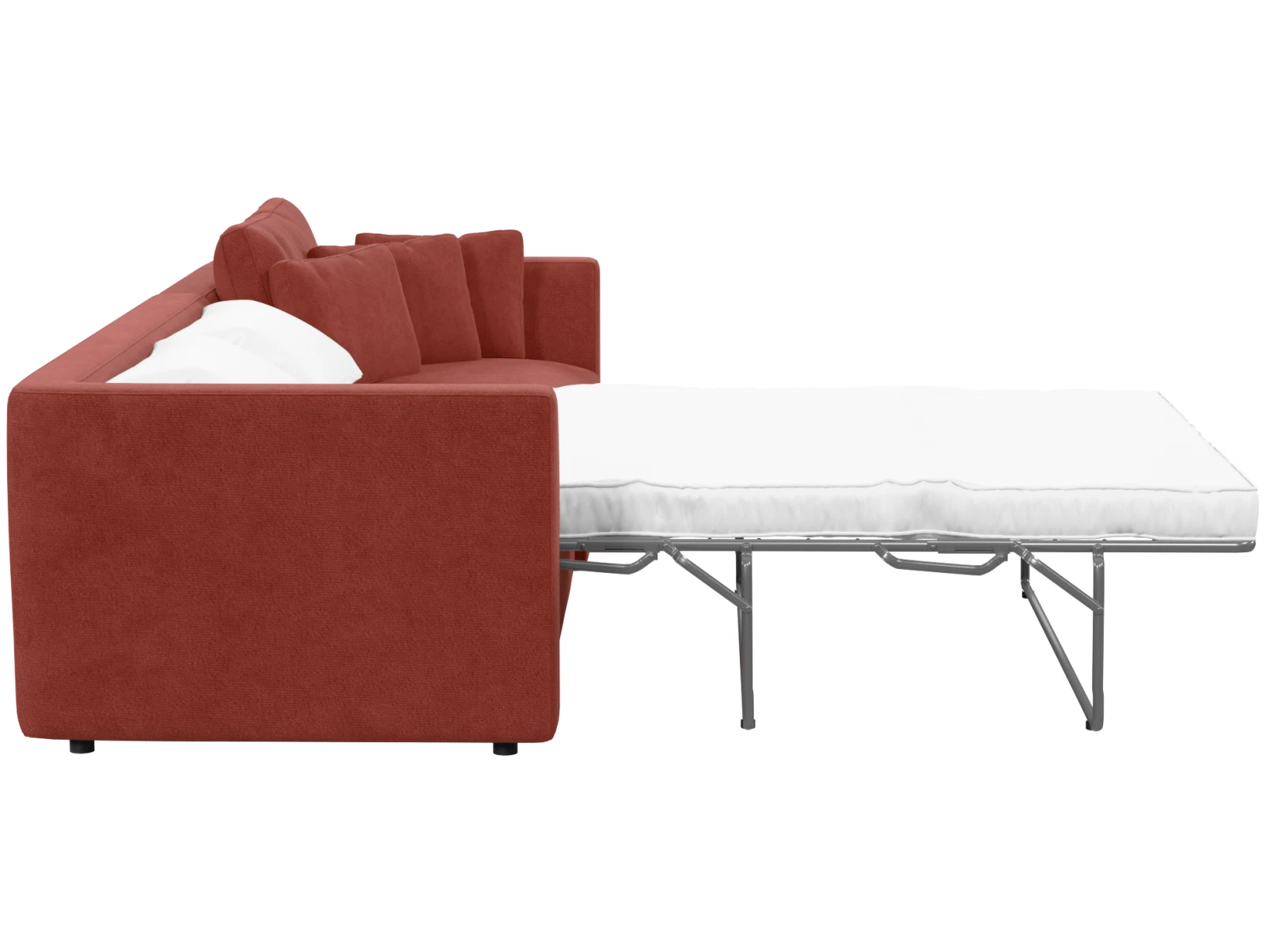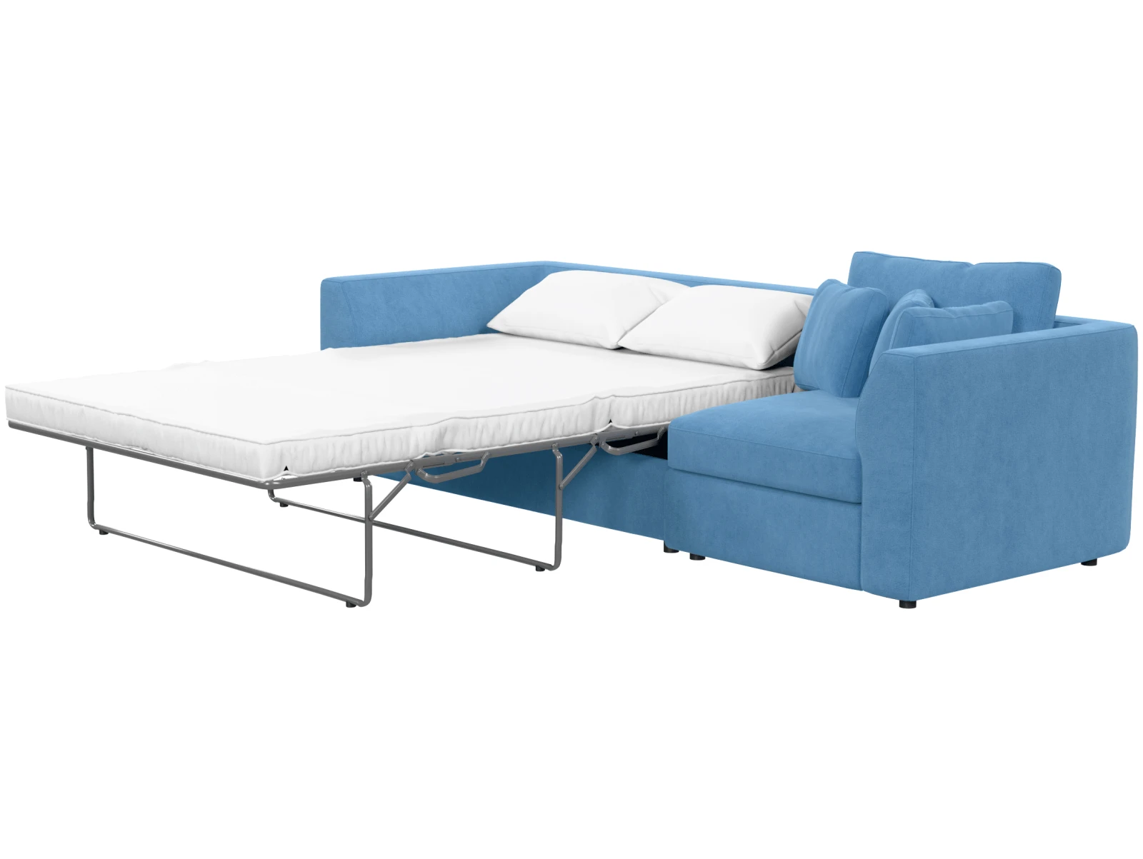 Габариты дивана: 258 × 95 × 95 см, в разложенном состоянии — 258 × 215 × 95 см, высота посадки — 50 см, размер спального места — 130 × 190 см, высота матраса — 85 мм.